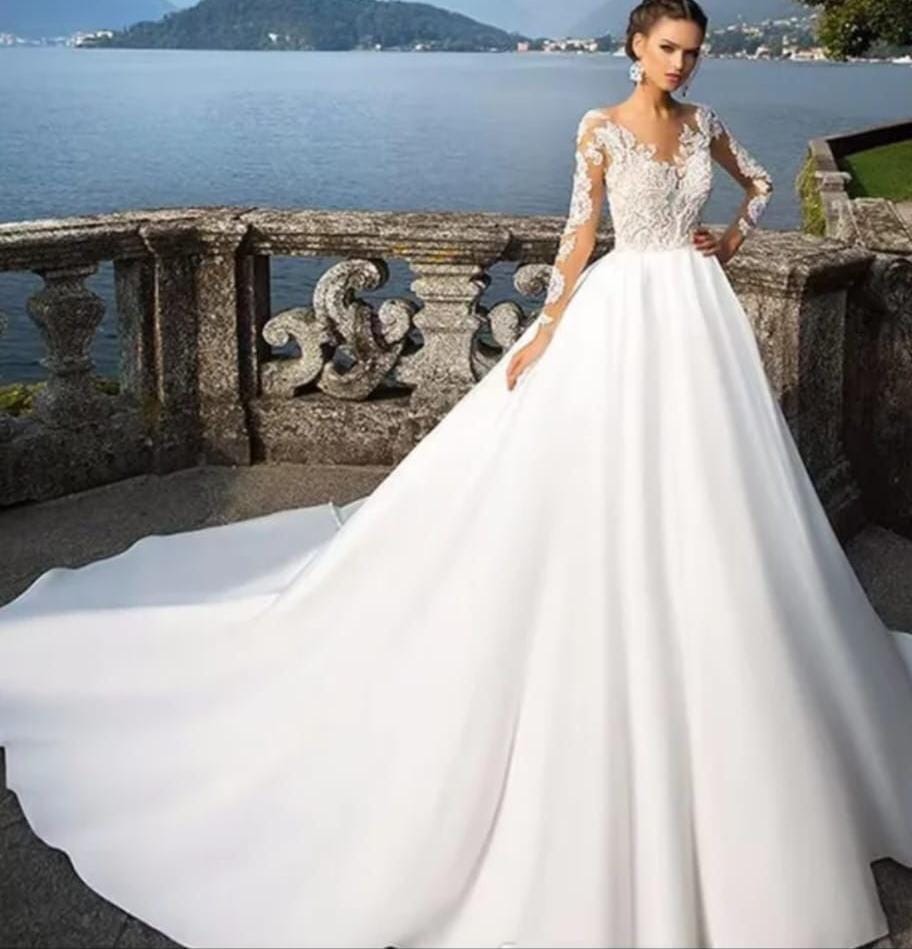 Le soutien-gorge intégré assure un maintien parfait et un confort optimal tout au long de la journée, pour une mariée sereine et confiante. - Bretelles : Manches longues